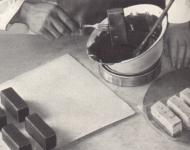 Tunken der Eisschnitte in Kuvertüre muß flott