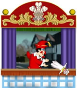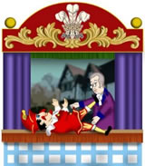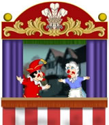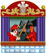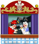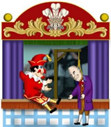 Sowie der Vorhang aufrollt, hört man hinter der Szene Punch